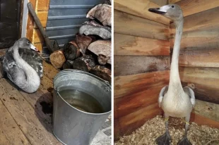 Жители Ванавары спасли вмерзшего в лед краснокнижного лебедя
