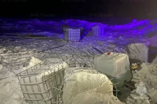 Емкости с соляной кислотой выпали в результате ДТП с грузовиком, которое произошло 10 января на 601-м километре трассы Р-255 «Сибирь».