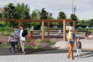 Раньше здесь была стихийная парковка, теперь появится пешеходная тропа, зона тихого отдыха, детская и спортивная площадки.