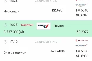 Рейс Azur Air из Пхукета в Красноярск задерживают до 6 апреля