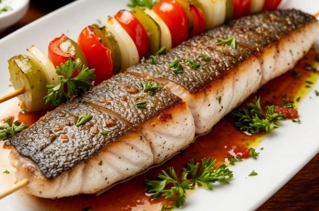 Шашлык из сибаса с лаймово-пивным маринадом