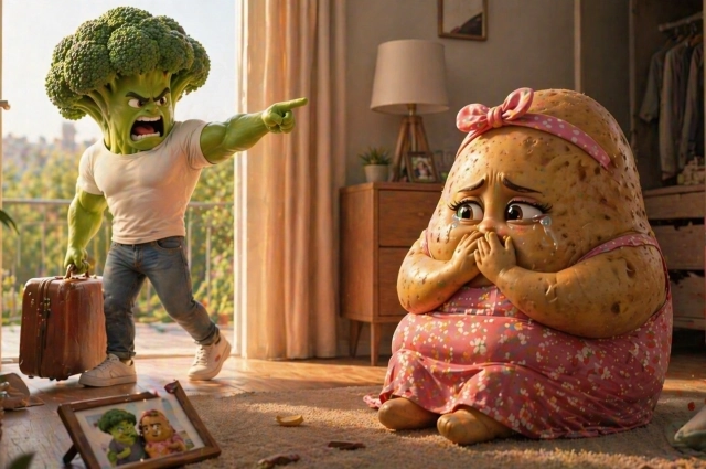 В топе сюжетов таких видео — измены, любовные треугольники, предательство друга, мужа или жены, шантаж. В одном из роликов муж-броколли бросает жену-картофелину за то, что та набрала вес. Она идет в спортзал и худеет, становится красавицей, заставляя бывшего мужа лить слезы. В итоге