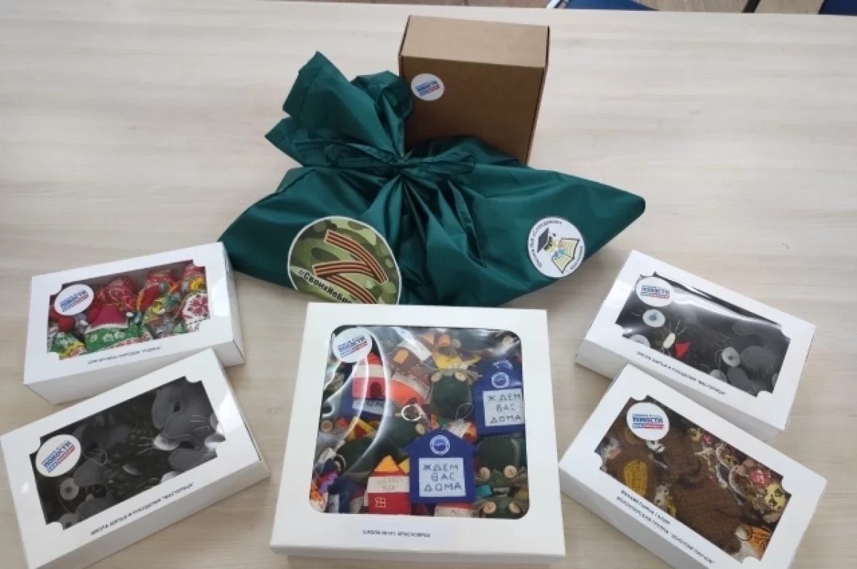 Разные талисманы передали для бойцов ученики начальных классов школы № 8.