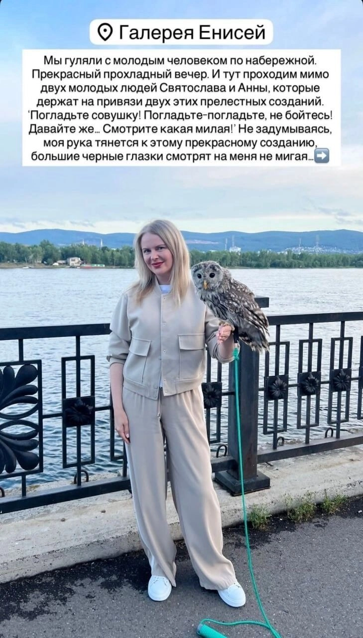 Женщина рассказала в соцсетях, что гуляла с молодым человеком по набережной, когда к ней подошли люди с совами на привязи и сказали, что птиц можно гладить. Они предложили сфотографироваться. Фотографии оказались платными. Женщину убедили, что деньги пойдут на помощь птицам в питомнике.