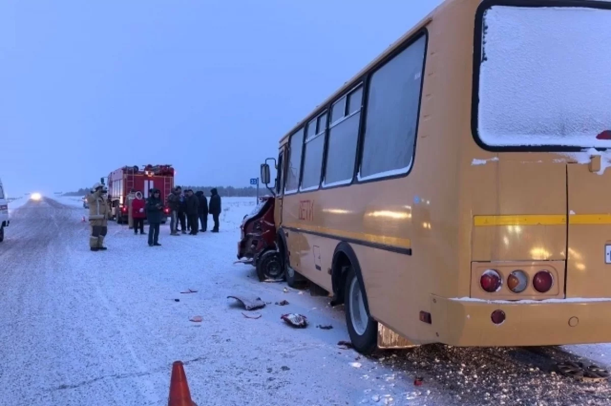 Женщина погибла в ДТП с школьным автобусом в Красноярском крае