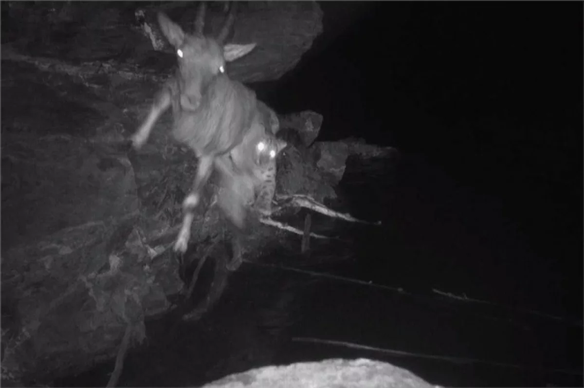 В Саяно-Шушенском заповеднике козерог спасся от снежного барса, уйдя вплавь. Об этом сообщили в пресс-службе заповедника.