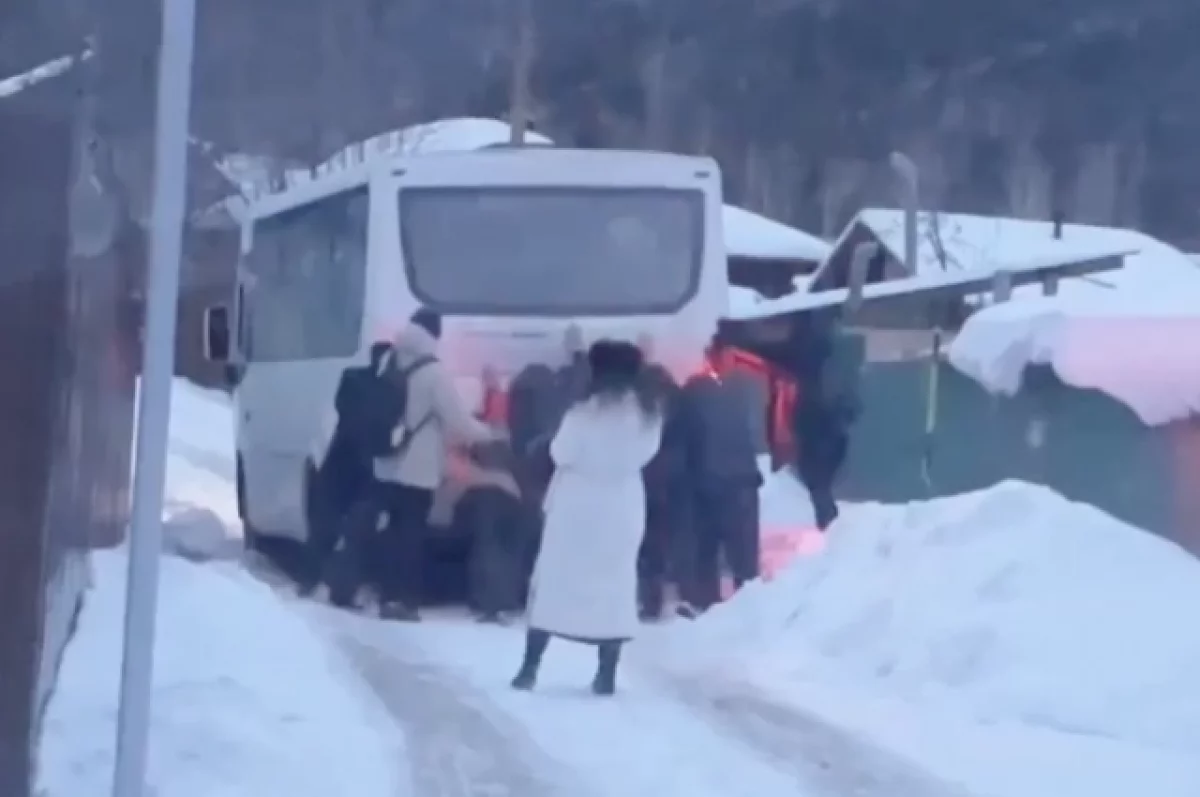 Вечером 17 февраля работникам мемориального комплекса Виктора Астафьева в Овсянке Красноярского края пришлось толкать служебный автобус. Транспорт увяз в снегу прямо в центре туристического села.