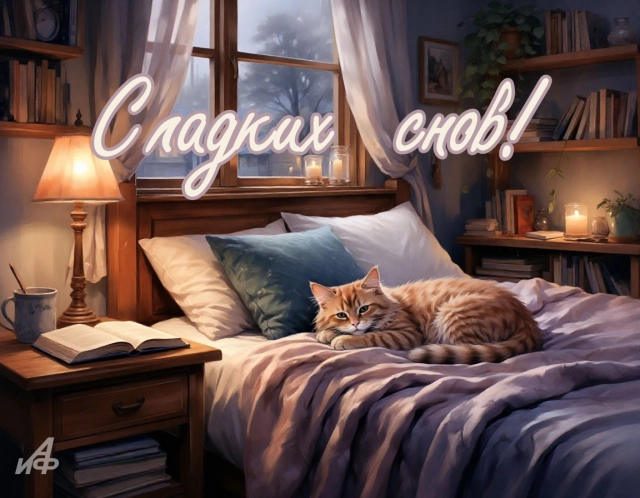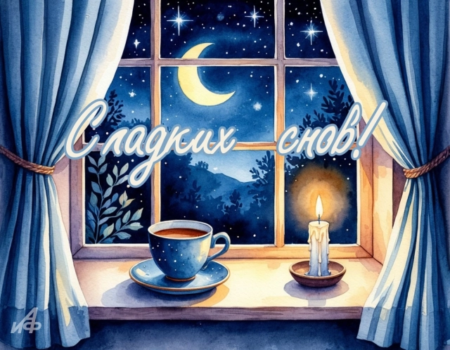 Сохраняйте и отправляйте открытки совершенно бесплатно! Пусть каждый вечер в 2025 году будет тёплым, спокойным и наполненным добрыми снами.