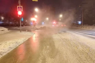 Из-за прорыва трубы затопило дорогу на одной из улиц в Красноярске